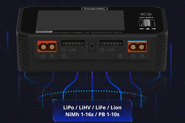 Відправка з 21 листопада 2025ToolkitRC M6DAC – це двоканальний зарядний пристрій із вбудованим блоком живлення, що забезпечує зарядку до 200 Вт (AC) або 350 Вт (DC) на кожен канал. Підтримує одночасну зарядку двох акумуляторів струмом до 15 А на порт, або заряд одного акумулятора на двох портах сумарною потужністю до 25 А (700 Вт) у синхронному режимі.